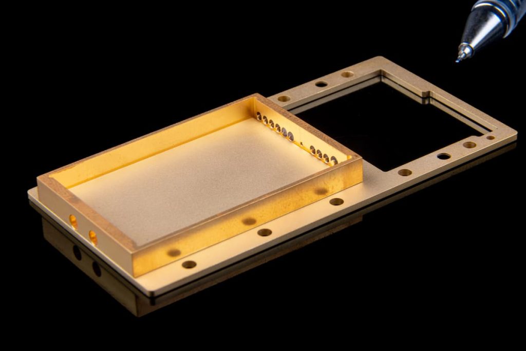 High-performance hermetic TRM box assembly enclosure designed for RF and microwave Transmit/Receive Modules (TRMs). The package integrates glass-to-metal sealed feedthroughs on the sidewall for signal/power routing, enabling secure and ultra-reliable electrical connectivity while maintaining full hermeticity.